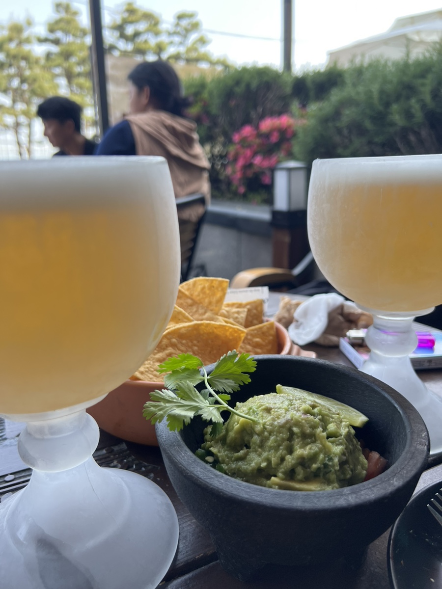 오늘은 타코와 코로나리타, 생맥주를 시켰고요